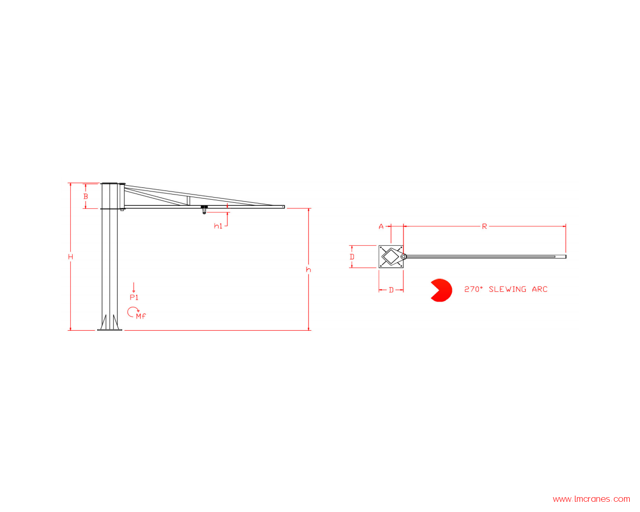 *如果旋臂起重機的高度 (H) 增加或減少,這些尺寸可能會有所不同
