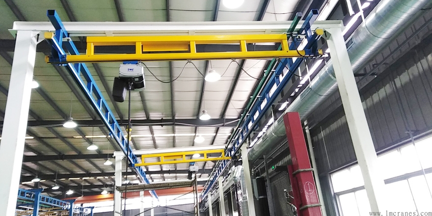 起重機規范組件構成的懸掛式單軌吊地完成了物料的線性空中運送。