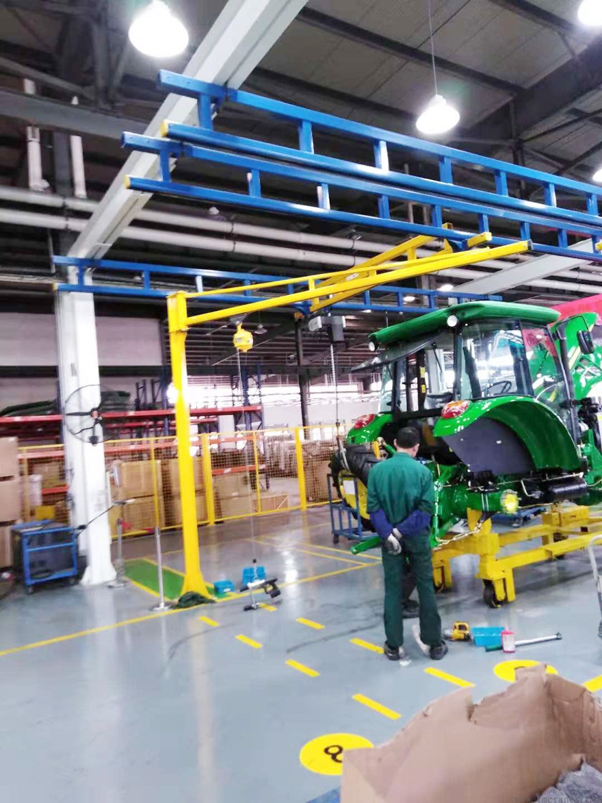 起重機規(guī)范組件構(gòu)成的懸掛式單軌吊地完成了物料的線性空中運送。