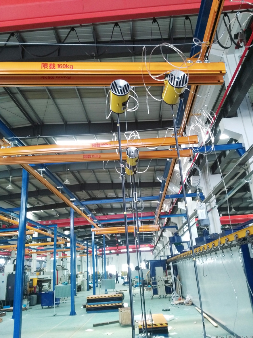 起重機自重特別輕,滑輪與軌道之間的摩擦力很小,操作輕便,可以很輕松的用手移動,