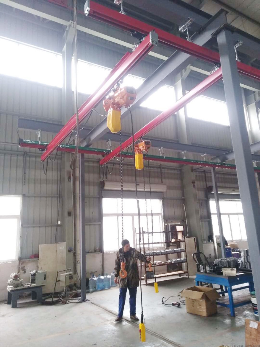 起重機自身重量尤其輕,滾輪與單軌相互之間的滑動摩擦力不大,實際操作輕巧,能夠很輕輕松松的用力挪動,