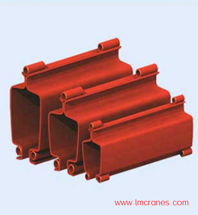 冷軋型鋼軌道,自重輕,剛性好,表面光滑,整根焊接時,由電腦程序控制一次完成,型軌平直度小于0.75mm/m和型軌扭曲度小于0.1度/m;軌道內的特殊導向面和稍微傾斜的接觸面保證了小車行走的平穩性。在中級額定起重量范圍內,采用內運行設計以保護小車和內部 (封閉式)滑觸線。表面靜電噴涂處理,剛性材質能保證正常使用情況下永久不變形。實現從定點搬運到高準確度的多點、多節拍的自動化輸送,都能隨意組合而成
