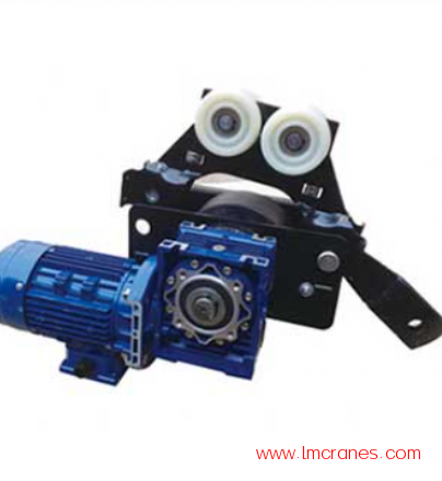 采用摩擦阻尼高的大直徑摩擦輪盤型彈簧用恒定的壓力擠壓驅動輪,壓在軌道的行走面上,通過牽引電機帶動小車行走