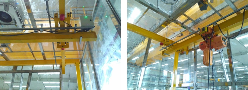 單梁超低懸掛起重機是把承重梁懸架固定不動在房屋建筑走動路軌(工型鋼)上的起重設備。走動路軌的設定處及跨距能夠隨意設置,最合適于自動生產線等處。
